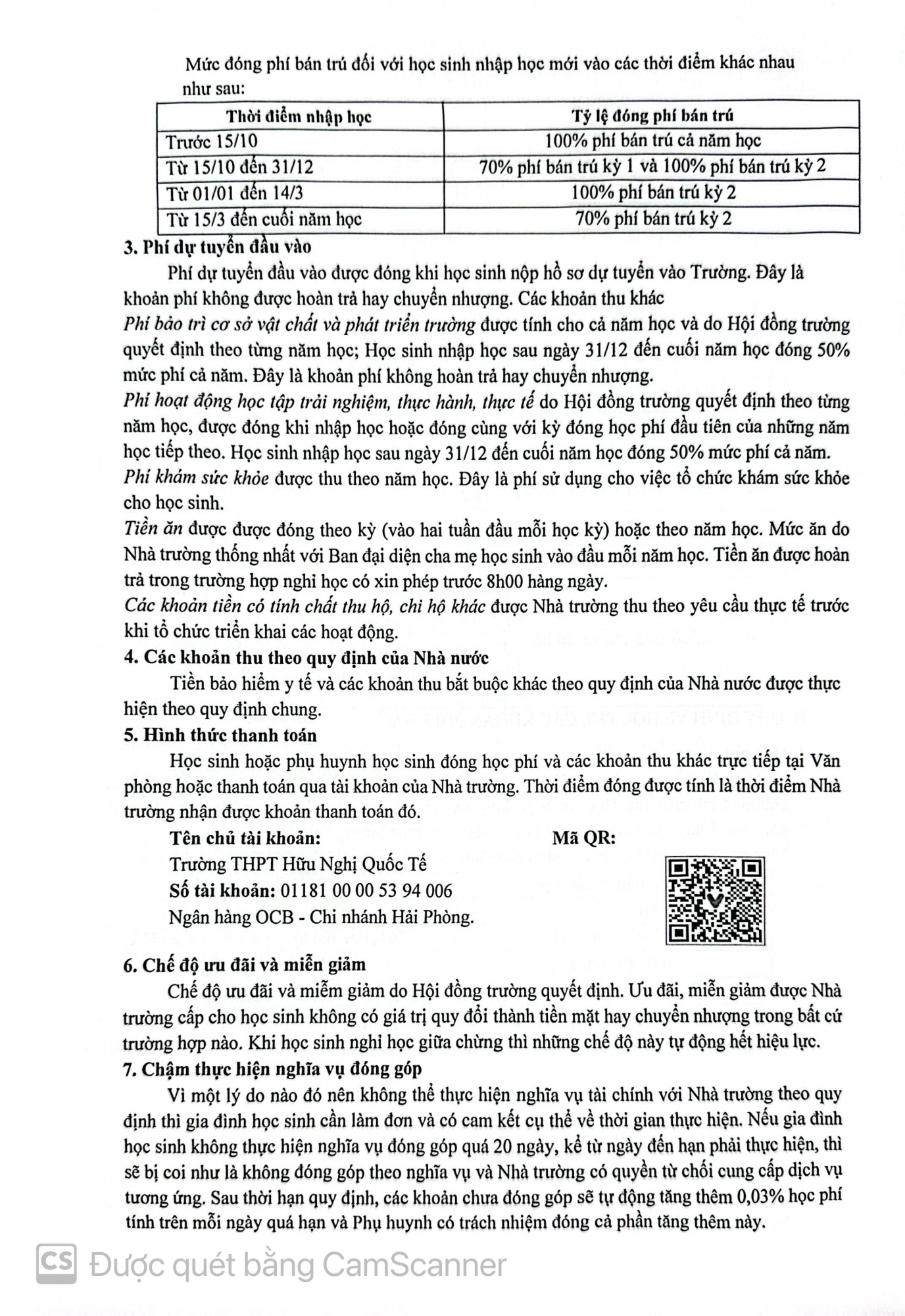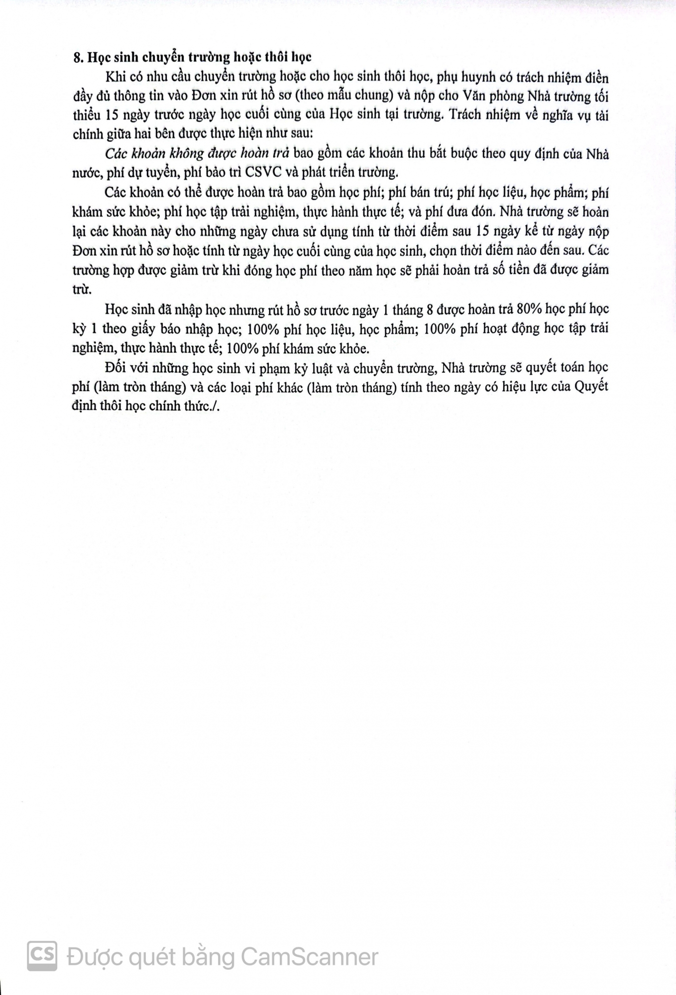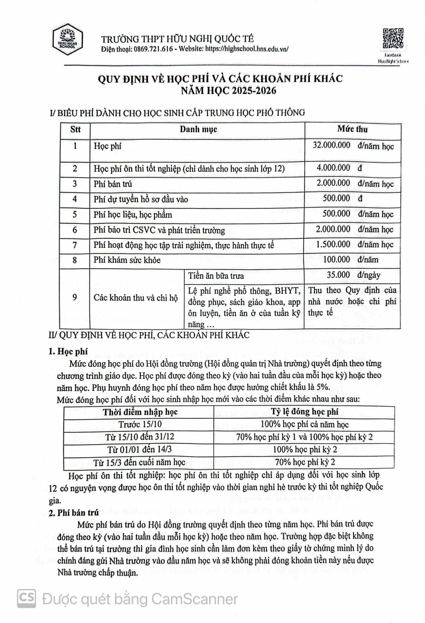 Biểu phí và quy định về học phí, các khoản phí khác năm học 2025 - 2026 - Khối THPT