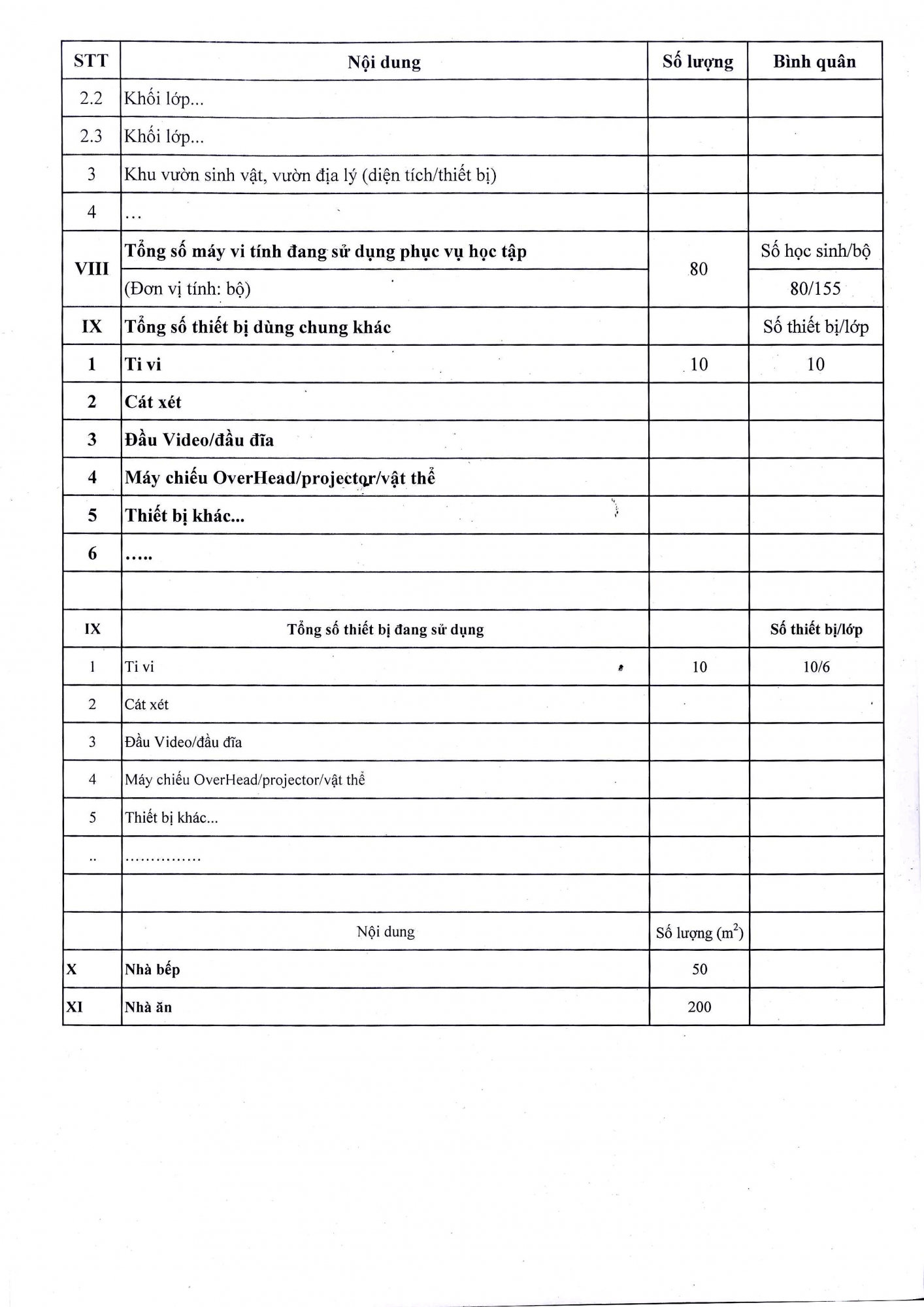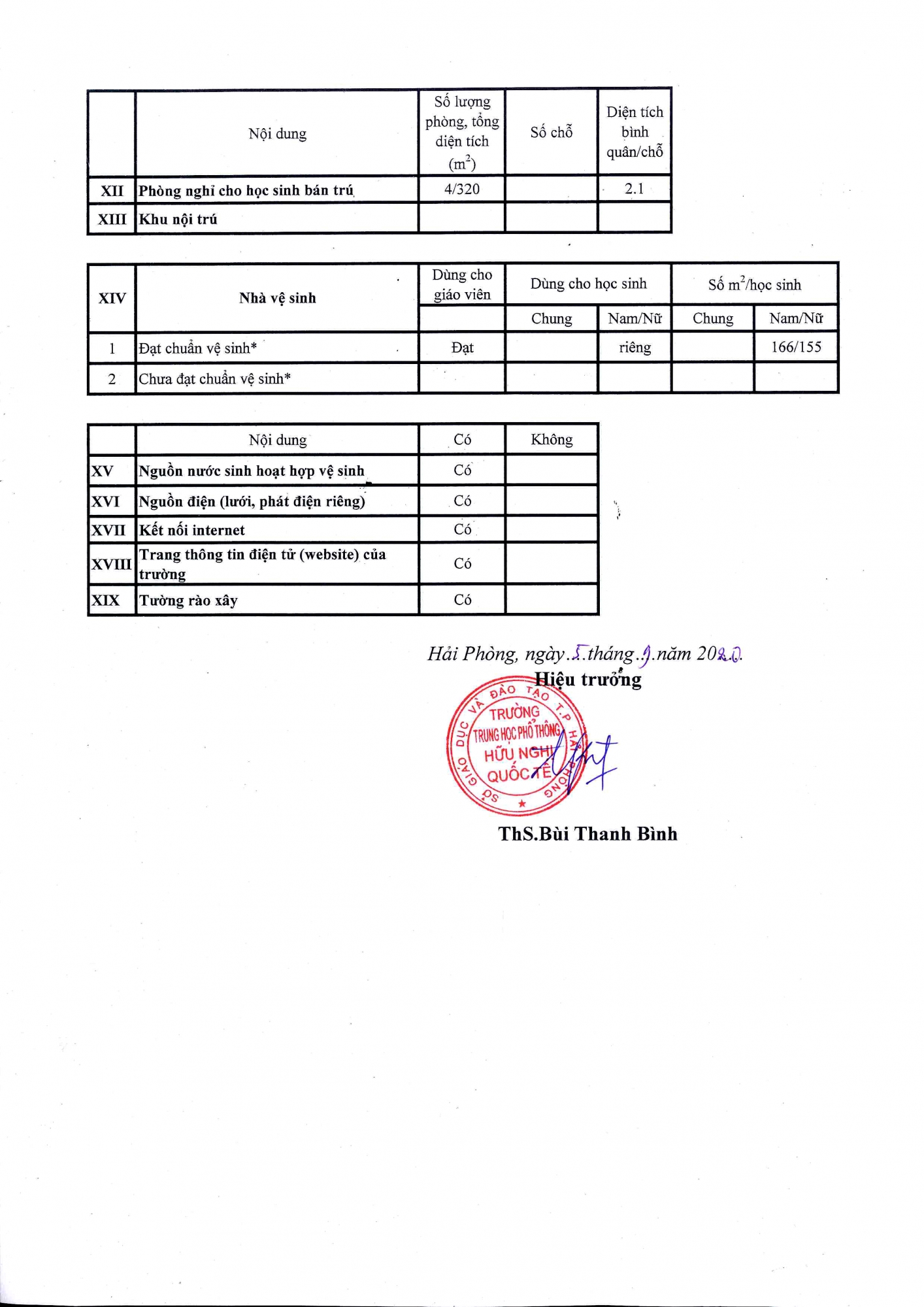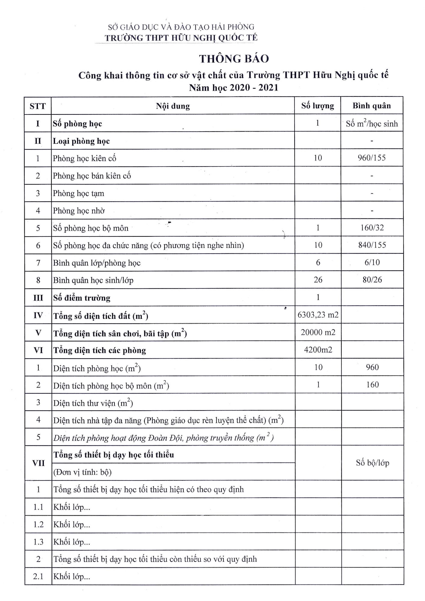 Công khai thông tin CSVC Trường THPT Hữu Nghị Quốc Tế