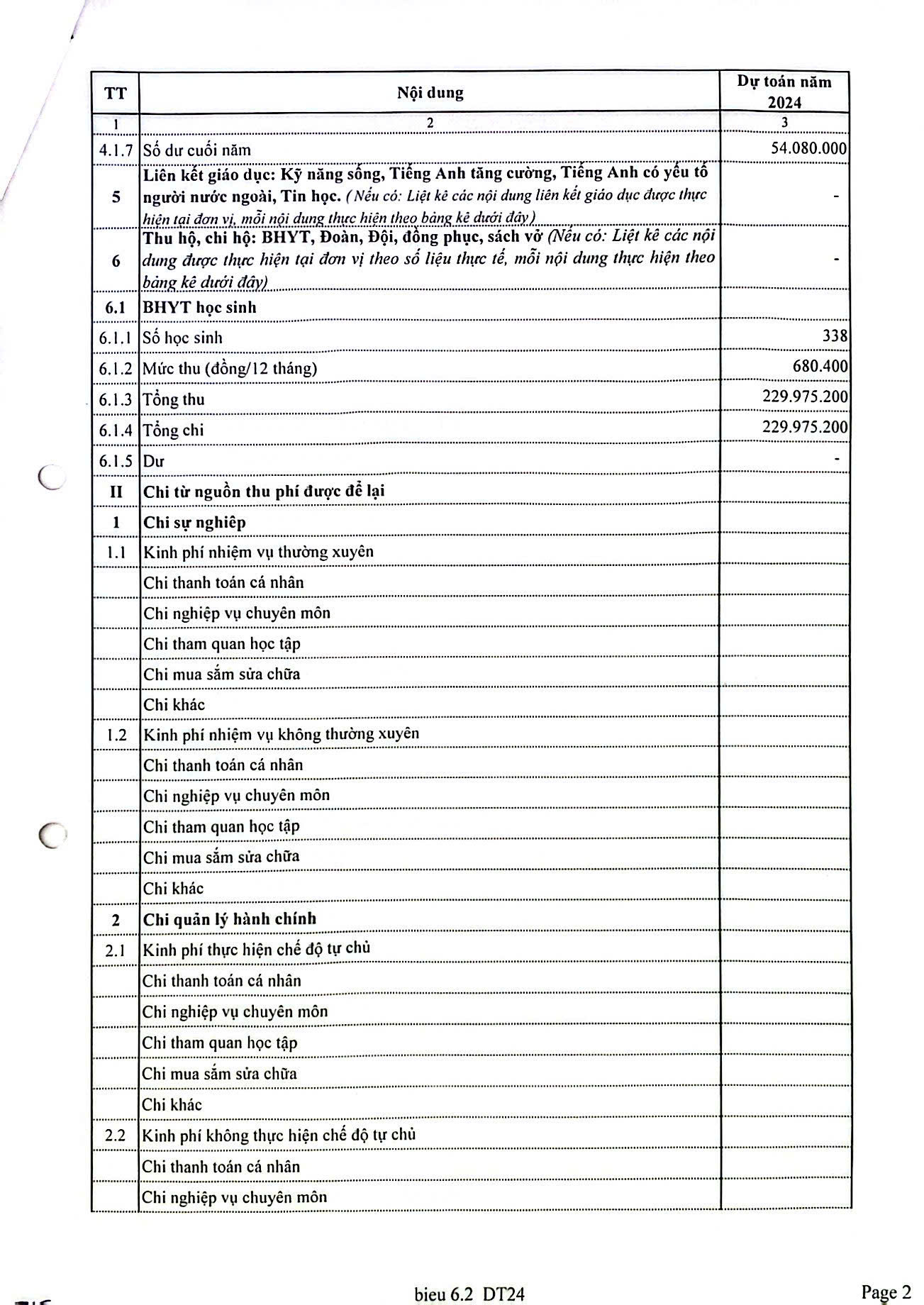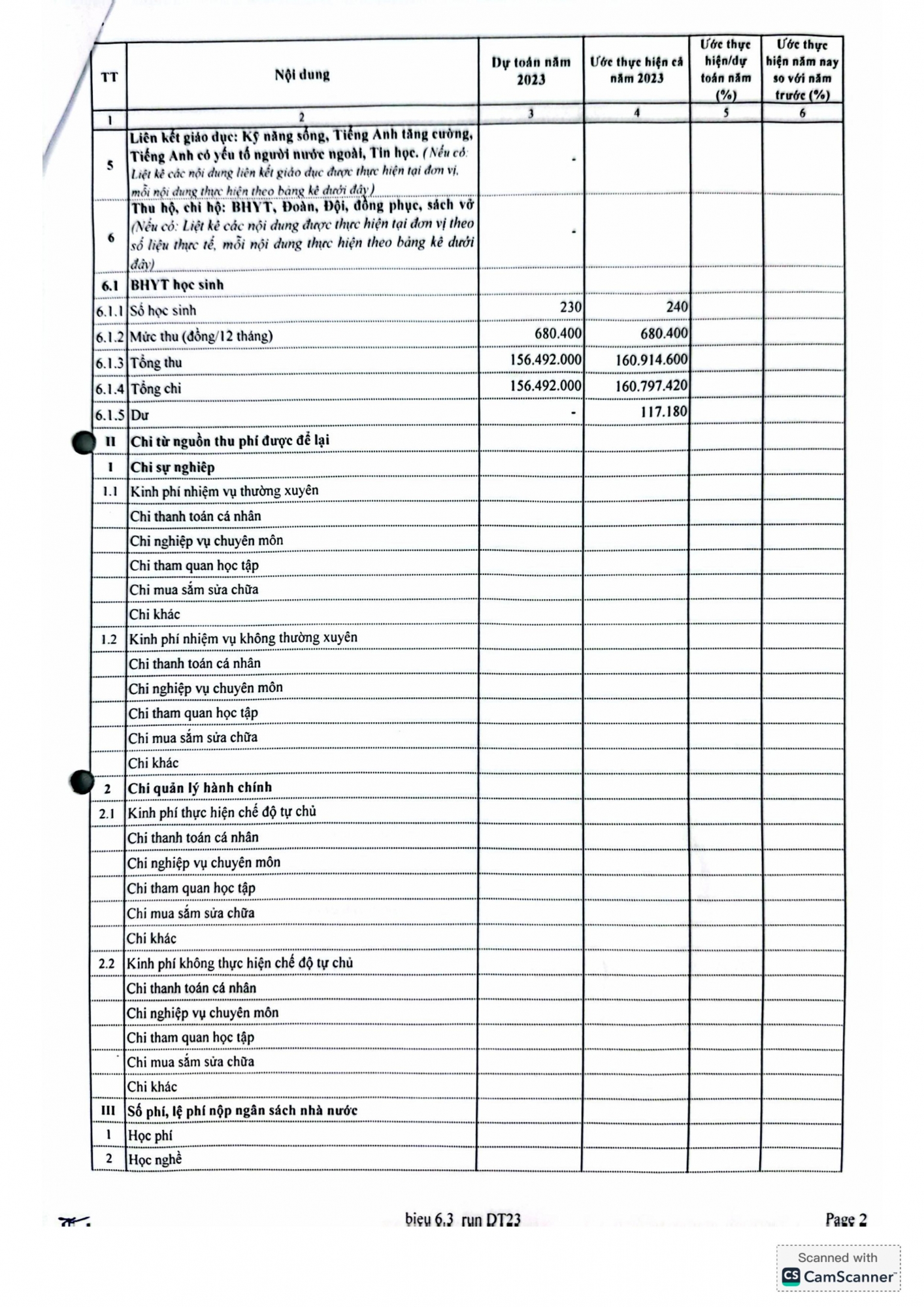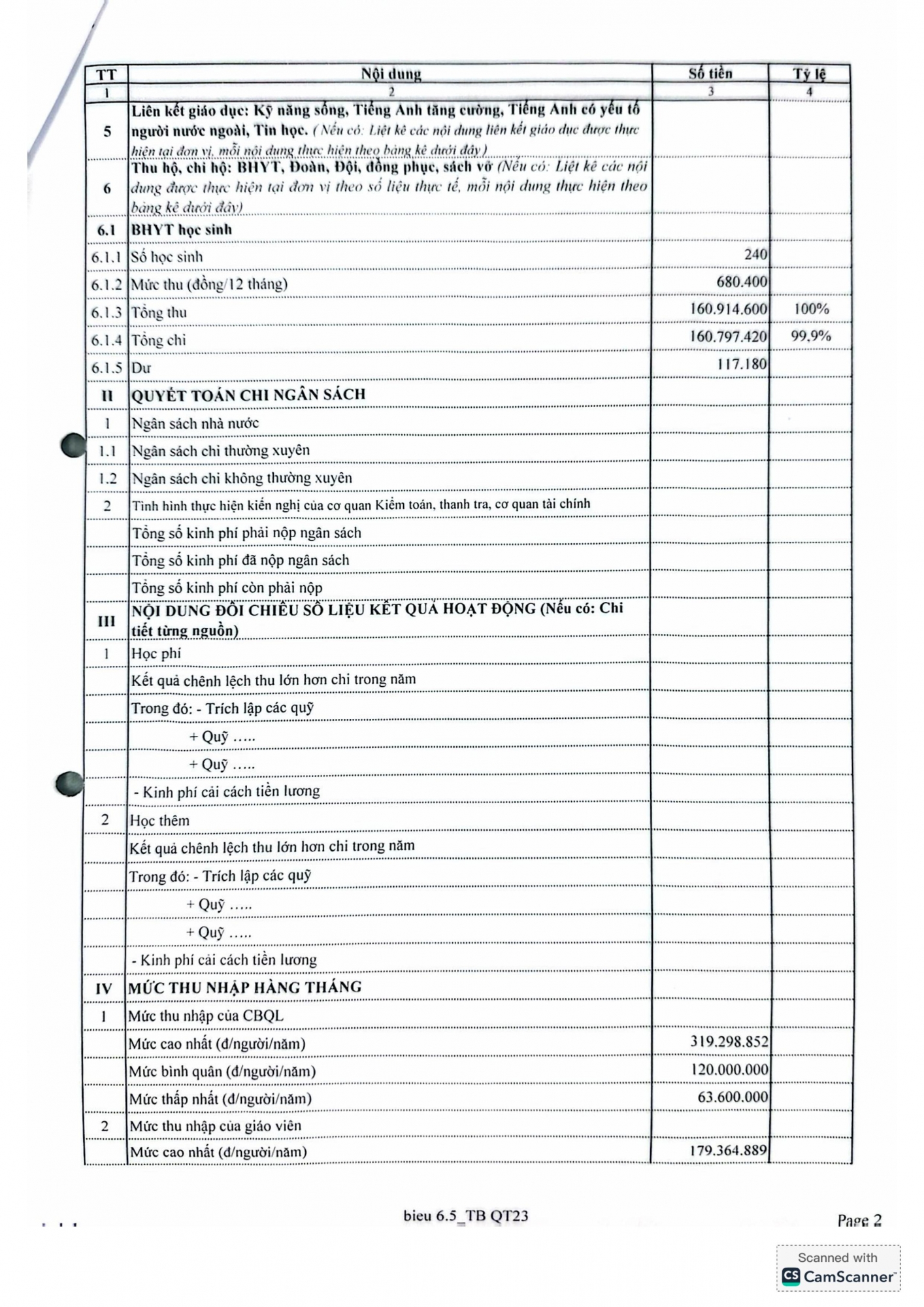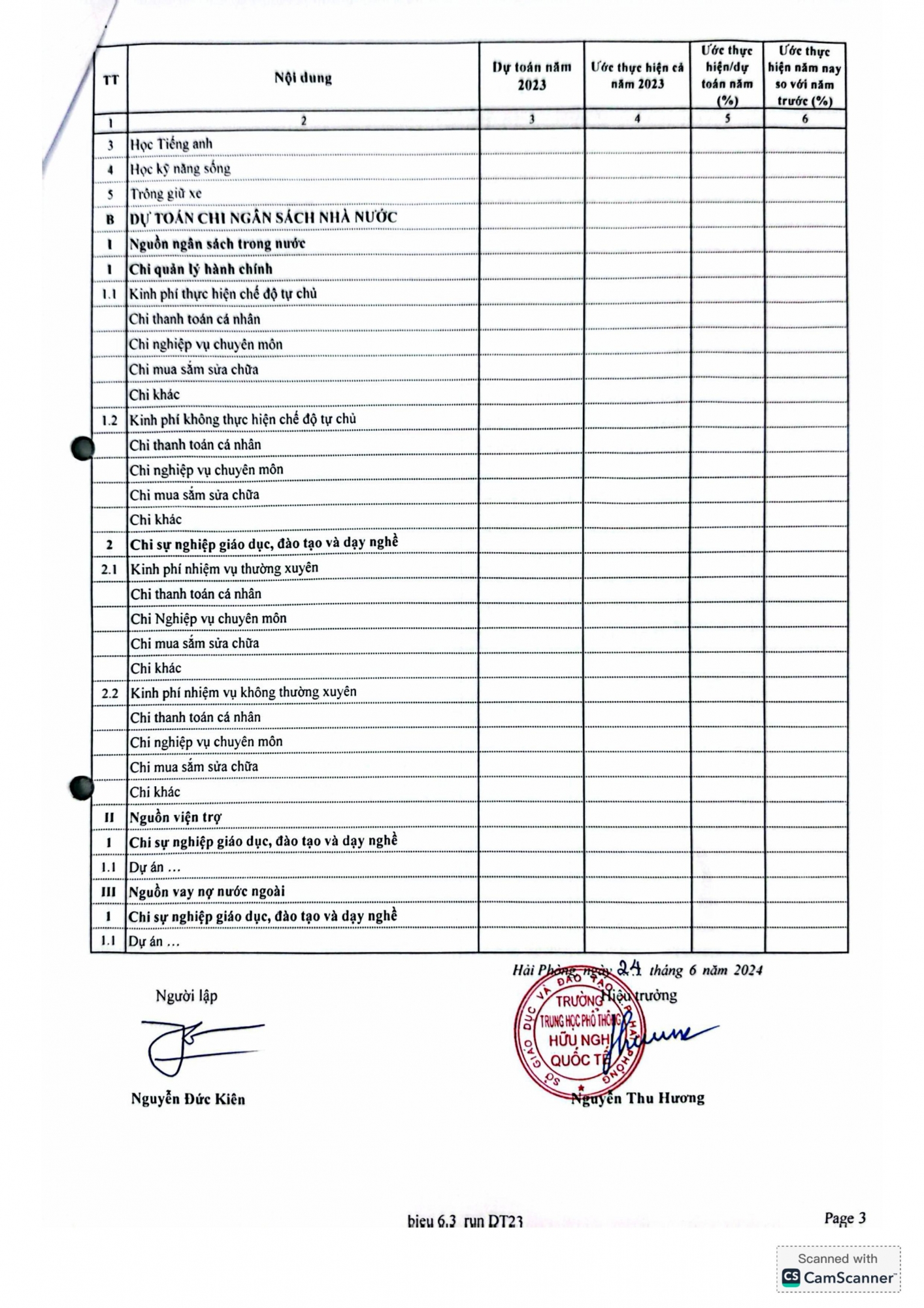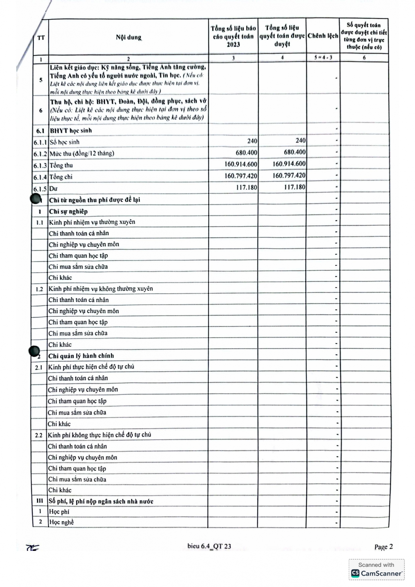 Báo cáo của trường THPT Hữu Nghị Quốc tế về việc công bố công khai quyết toán ngân sách và các khoản thu năm 2023; công bố công khai dự toán ngân sách và các khoản thu năm 2024