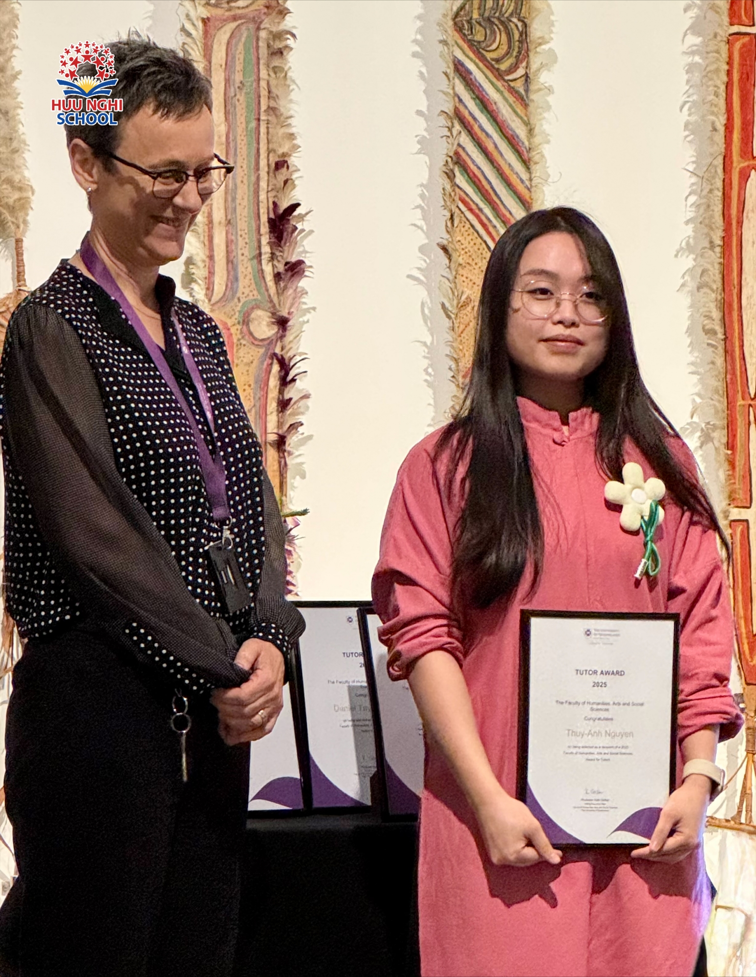 Trường THPT Hữu Nghị Quốc Tế vui mừng thông báo: cô Nguyễn Thuỳ Anh, Cố vấn Phòng Tâm lý học đường, đã xuất sắc nhận Tutor Award 2025 của Đại học Queensland (UQ) – một trong những trường đại học hàng đầu thế giới. Đây không chỉ là niềm tự hào cá nhân của cô Thuỳ Anh mà còn là dấu mốc quan trọng trong hành trình hội nhập giáo dục quốc tế của nhà trường.