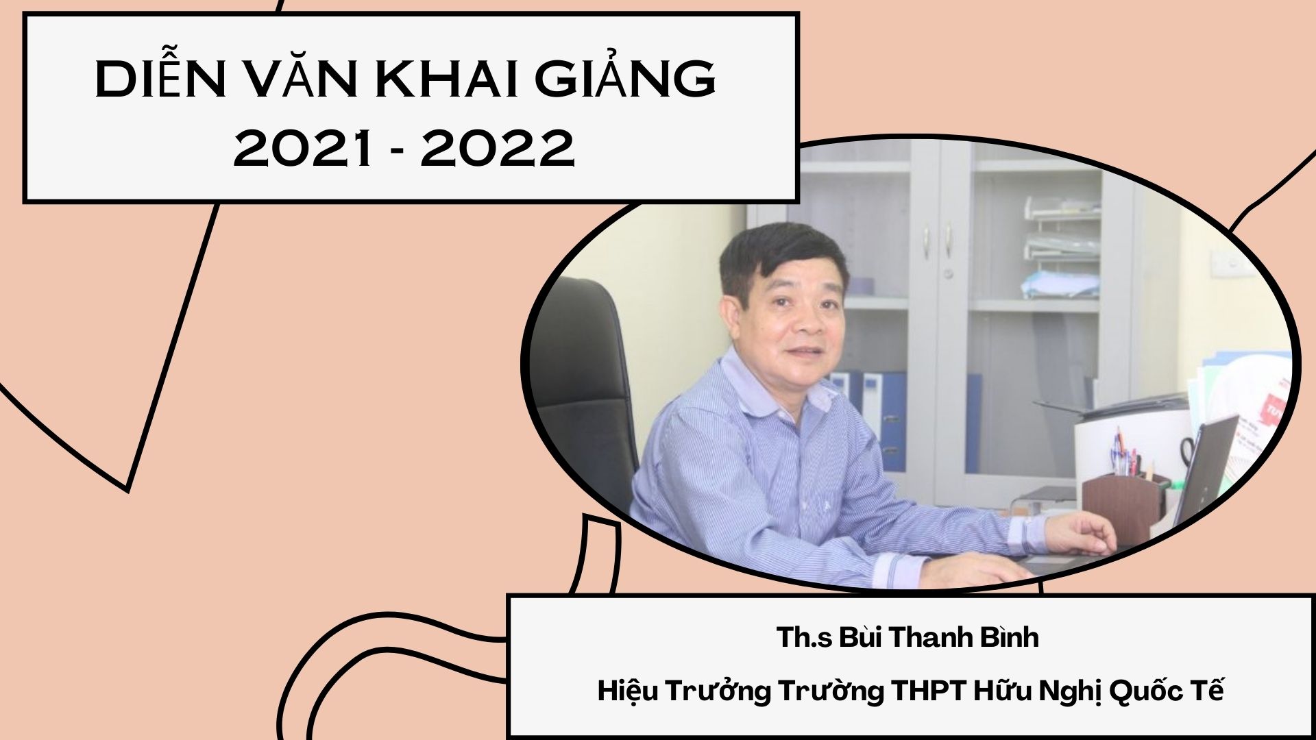 Sáng ngày 05/09/2021 Trường THPT Hữu Nghị quốc tế đã tổ lễ khai giảng năm học mới 2021 – 2022. Trong buổi lễ khai giảng đặc biệt này, bài diễn văn khai mạc của Th.s Bùi Thanh Bình - Hiệu trưởng nhà trường đã nhận được sự đón nhận của rất nhiều phụ huynh và học sinh. Sau đây ban website xin được đăng lại bài diễn văn của thầy.