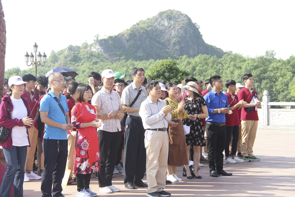 Điểm dừng chân đầu tiên của đoàn là Khu di tích Bạch Đằng Giang - quần thể di tích lịch sử, văn hóa, tín ngưỡng nổi tiếng của Thành phố Cảng. Trên cửa sông Bạch Đằng đã gắn liền với 3 trận thủy chiến nổi tiếng trong lịch sử chống giặc ngoại xâm của dân tộc ta (năm 938 Ngô Quyền đánh tan quân Nam Hán; năm 981 Lê Hoàn đánh tan quân Tống và năm 1288 Hưng đạo Đại vương Trần Quốc Tuấn đánh tan quân Nguyên Mông).