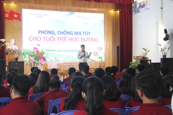 Đầu giờ chiều các em học sinh tham dự buổi tuyên truyền về chủ đề phòng, chống ma túy cho tuổi trẻ học đường. Tại buổi tuyên truyền, các em học sinh trường THPT Hữu Nghị Quốc tế đã được các báo cáo viên là giáo viên, cán bộ lãnh đạo của Trung tâm giáo dục lao động xã hội Gia Minh trao đổi, giới thiệu về các loại ma tuý mới hiện nay như: cỏ mỹ, tem lưỡi, heroin, ma tuý đá… cùng các thông tin về hình thức, tác hại của ma tuý. Cùng với đó là các kỹ năng ứng phó với các tình huống khi bị rủ rê, lôi kéo sử dụng ma túy; khi tiếp xúc, chơi với người nghiện...