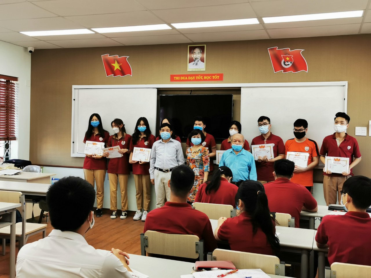 Sáng ngày 06 tháng 9 năm 2021, GS.TS.NGUT Trần Hữu Nghị thay mặt HĐQT, Thầy Bùi Thanh Bình – Hiệu trưởng nhà trường, Cô Nguyễn Thu Hương – Phó Hiệu trưởng cùng các thầy cô chủ nhiệm đã có mặt tại phòng học để trao những phần thưởng ý nghĩa cho những học sinh đã đạt thành tích cao trong kỳ thi học sinh giỏi năm học 2020 – 2021.